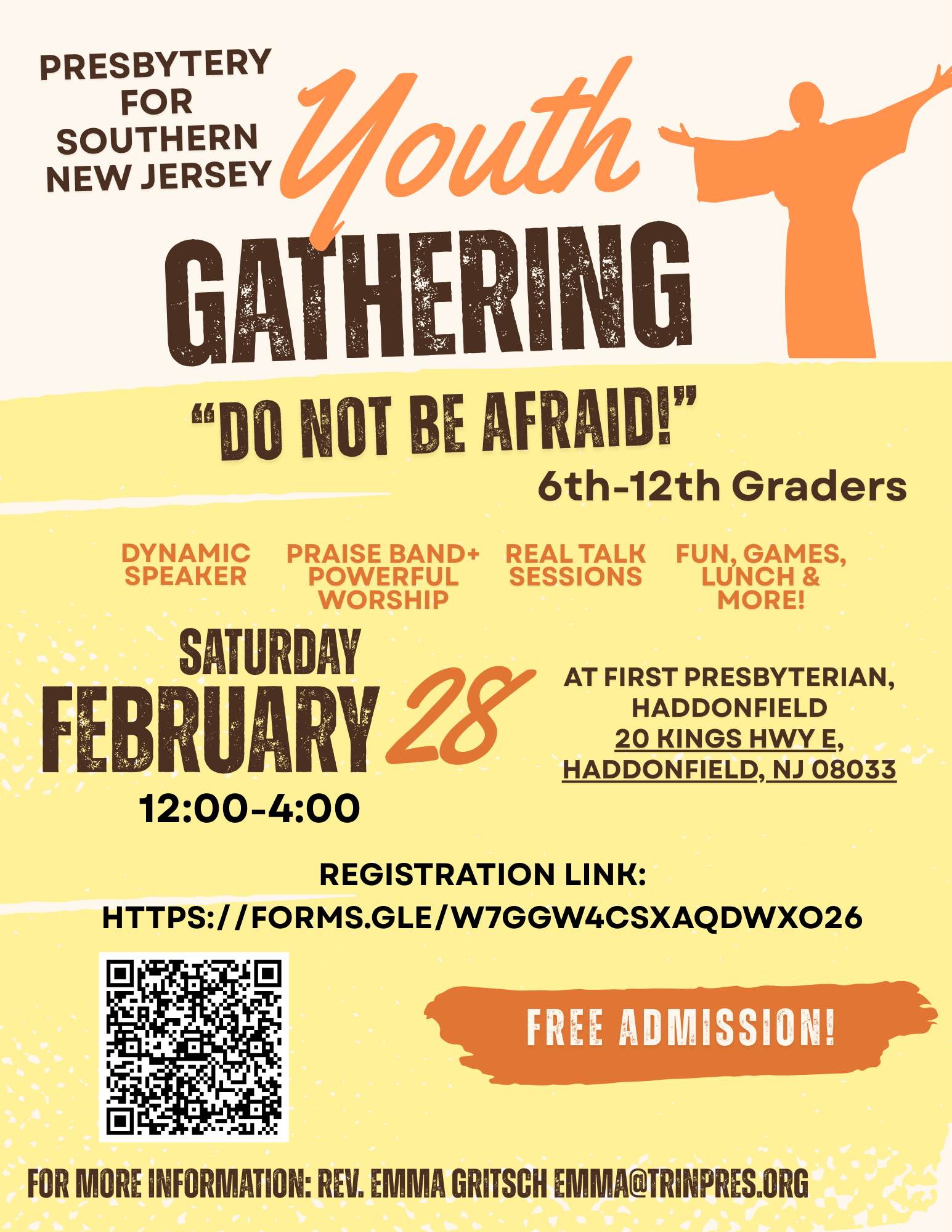 Our Youth Group meets on Sunday Nights at 6:00pm. Please contact Eric Walker if you are interested in attending! ewalker@haddonfieldpres.org.